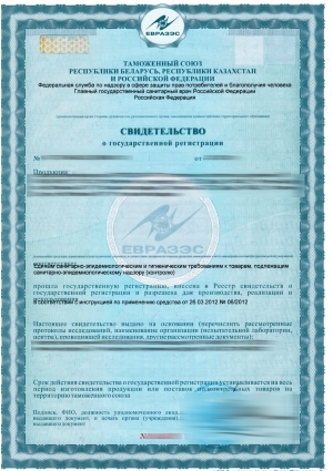 Свидетельство о государственной регистрации является документом, подтверждающим соответствие продукции санитарно-эпидемиологическим и гигиеническим требованиям к продукции.